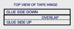 To make the hinge, use two 2 to 3 inch pieces of tape (6 inches for a 30x40 print). Place one piece of tape glue side up and the other glue side down, overlapping by 1/4 inch the long way, to become one piece as in the diagram.